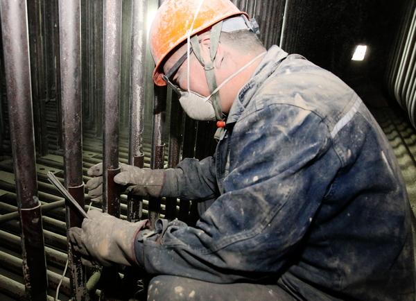 9月6日,國(guó)電大武口熱電有限公司一名職工正在對(duì)該公司1號(hào)機(jī)組鍋爐尾部受熱面管排進(jìn)行檢查。近日,大武口公司搶抓機(jī)組調(diào)停時(shí)機(jī),積極檢查鍋爐“四管”磨損情況以及對(duì)重要缺陷進(jìn)行搶修,為下一步的安全運(yùn)行及供熱期的到來(lái)做好充分準(zhǔn)備。