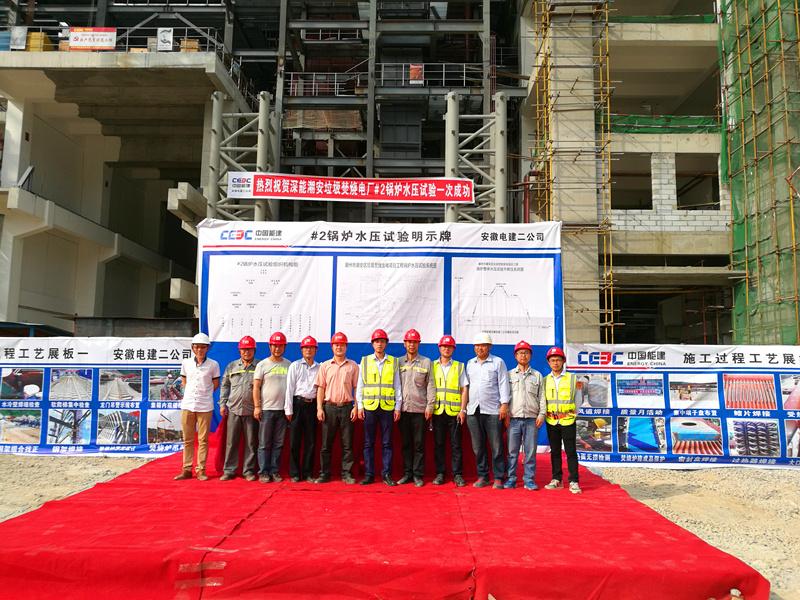 2017年05月08日15時48分,中國能建安徽電建二公司承建的深能環(huán)保潮安(3臺×400t/d+2×15MW)生活垃圾焚燒發(fā)電廠#2鍋爐水壓試驗一次成功。