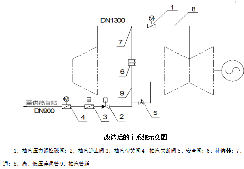 本次采暖供熱改造是從中低壓聯(lián)通管上加裝三通,并在抽汽聯(lián)通管三通后加裝調(diào)節(jié)蝶閥實(shí)現(xiàn)可調(diào)整供熱;中排抽汽額定供熱抽汽量300t/h,最大供熱抽汽量400t/h;抽汽壓力范圍0.60-1.0Mpa,供熱溫度360-380℃。抽汽管道上增設(shè)逆止閥、快關(guān)閥、安全閥等滿足供熱工況運(yùn)行的要求;