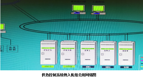 為了實(shí)現(xiàn)集中控制操作的理念我們將供熱系統(tǒng)納入到了主機(jī)公用系統(tǒng),這樣兩臺機(jī)組可以根據(jù)操作權(quán)限選擇,實(shí)現(xiàn)對供熱系統(tǒng)的控制且無需單獨(dú)設(shè)置供熱操作站,這樣大大的減少了操作人員的勞動(dòng)強(qiáng)度,實(shí)現(xiàn)了集中控制,保證了機(jī)組供熱控制系統(tǒng)和主機(jī)控制系統(tǒng)在一個(gè)局域網(wǎng)內(nèi),我們對公用環(huán)網(wǎng)系統(tǒng)新增兩對控制器,并通過兩個(gè)單元機(jī)組的GW(公用控制器)控制器與單元機(jī)組進(jìn)行數(shù)據(jù)通訊(如下圖所示),以實(shí)現(xiàn)在單元操作員站對供熱系統(tǒng)內(nèi)的公用部分設(shè)備操作和監(jiān)控。