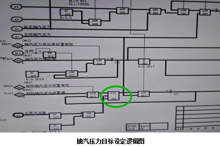 調(diào)節(jié)閥自動(dòng)運(yùn)行時(shí)我們對被調(diào)量的壓力設(shè)定值進(jìn)行了優(yōu)化,壓力設(shè)定值SP由運(yùn)行人員根據(jù)需要操作DCS手動(dòng)重新設(shè)定與東汽廠家給定的主蒸汽流量與抽汽壓力關(guān)系曲線設(shè)置值(加偏置),然后取兩者低值(如下圖所示)給出適合滿足熱負(fù)荷需求的壓力給定值,避免了運(yùn)行期間熱網(wǎng)系統(tǒng)出現(xiàn)故障和擾動(dòng)時(shí)給定壓力設(shè)定不當(dāng)引起閥門的大幅度擺動(dòng),影響機(jī)組的安全穩(wěn)定運(yùn)行。