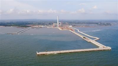 大唐國(guó)際雷州火電項(xiàng)目配套堤壩有如巨人的臂彎探入大海碧波之中