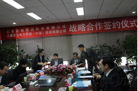 2016年2月24日,北京北科歐遠科技有限公司(以下簡稱歐遠科技)與三菱日立電力系統(tǒng)中國投資有限公司(以下簡稱三菱日立)在北京簽署戰(zhàn)略合作協(xié)議。歐遠科技董事長劉現(xiàn)卓、副總經理高穎、三菱日立總經理根本植樹一行人等出席簽約儀式。