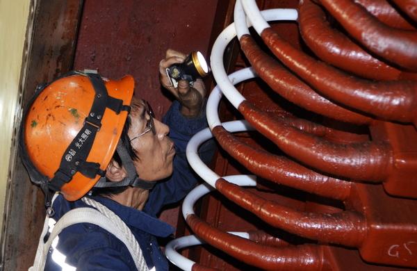9月11日,國(guó)電灤河發(fā)電廠電氣分場(chǎng)發(fā)電機(jī)班員工正在查找1號(hào)發(fā)電機(jī)冷卻引水管漏點(diǎn)。黨的十九大召開(kāi)在即,作為京津唐電網(wǎng)東北末端支撐點(diǎn)的國(guó)電灤河發(fā)電廠,擔(dān)負(fù)著為十九大保電的光榮任務(wù)。在1號(hào)機(jī)組A修中,該廠嚴(yán)格落實(shí)集團(tuán)公司安全穩(wěn)定電視電話會(huì)議精神,精益求精地進(jìn)行檢修,以確保機(jī)組健康、穩(wěn)定、經(jīng)濟(jì)運(yùn)行。
