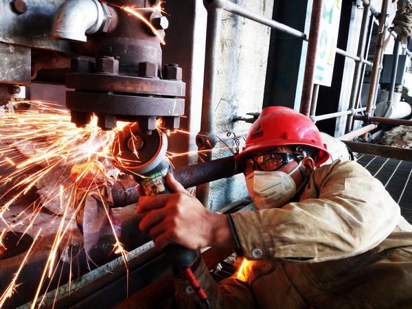 10月31日,國電銅陵發(fā)電有限公司檢修人員正在進行鍋爐本體吹灰器源管路焊接前的打磨處理工作。目前, 銅陵公司2號機組A修各項工作正式進入“收尾”階段,該公司上下齊心協(xié)力,力爭打造A修精品工程。