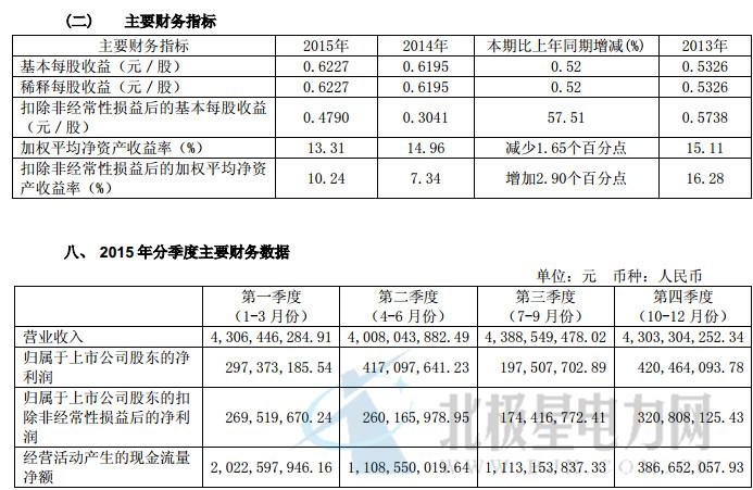 今日,上海電力股份有限公司發(fā)布2015年年度報告,根據(jù)公司2015年度經(jīng)審計的財務(wù)報告,2015年度母公司實現(xiàn)凈利潤727,774,280.15元,扣除按當(dāng)期凈利潤10%提取的法定盈余公積72,777,428.02元,當(dāng)年尚余可供股東分配利潤為654,996,852.13元,加上2015年初未分配利潤1,549,450,593.93元,扣除2014年度現(xiàn)金紅利分配534,934,814.25元,2015年末可供股東分配的利潤余額為1,669,512,631.81元。