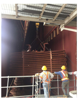 省煤器的開吊,進(jìn)一步展開了焊接工作面,推進(jìn)了水壓試驗(yàn)節(jié)點(diǎn)的順利完成。