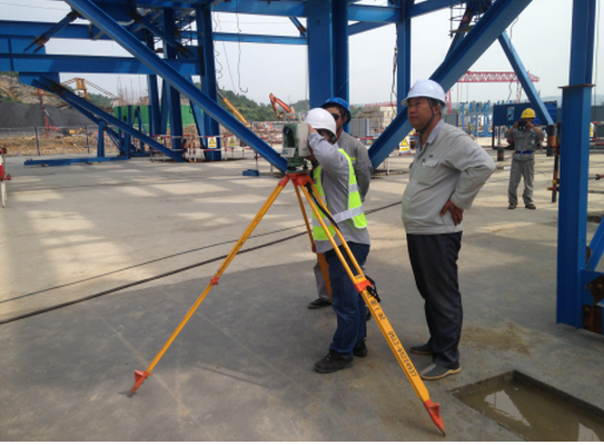 黔西電廠二期擴(kuò)建工程1×660MW工程第一層鋼結(jié)構(gòu)總重約977.5噸,在吊裝過程中,施工人員認(rèn)真對(duì)設(shè)備進(jìn)行外觀質(zhì)量檢查,對(duì)發(fā)現(xiàn)的設(shè)備缺陷及時(shí)記錄,技術(shù)人員第一時(shí)間聯(lián)系監(jiān)理、業(yè)主、廠家代表對(duì)缺陷進(jìn)行確認(rèn)并提出缺陷處理措施,避免由于設(shè)備問題影響到現(xiàn)場(chǎng)施工進(jìn)度。第一層鋼架吊裝結(jié)束后,技術(shù)人員、質(zhì)檢人員認(rèn)真對(duì)鋼架柱間距、對(duì)角線、1m標(biāo)高線、垂直度等數(shù)據(jù)進(jìn)行復(fù)查,對(duì)發(fā)現(xiàn)的超標(biāo)尺寸要求施工班組立即進(jìn)行整改,確保鋼架的安裝施工質(zhì)量。