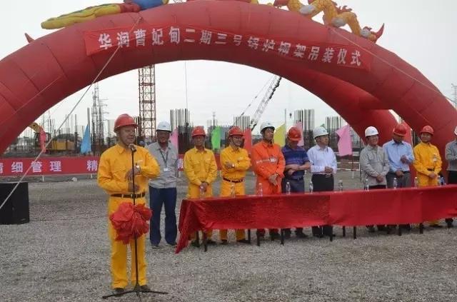 10時(shí)28分,華潤(rùn)電力有限公司總經(jīng)理李桂芳宣布華潤(rùn)曹妃甸電廠二期工程3號(hào)鍋爐鋼架吊裝開(kāi)始
