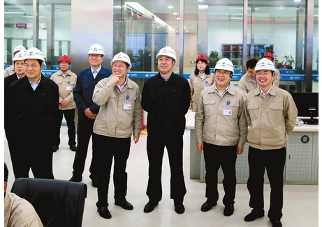 國(guó)電集團(tuán)黨組書(shū)記、董事長(zhǎng)喬保平(左四)查看泰州首臺(tái)百萬(wàn)千瓦超超臨界二次再熱燃煤機(jī)組。