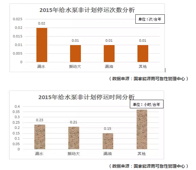 據(jù)國家能源局電力可靠性管理中心數(shù)據(jù)顯示,2015年給水泵問題也是出自產(chǎn)品質(zhì)量不佳、設(shè)備老化,造成給水泵本體、機(jī)械密封組件、電動機(jī)等部件發(fā)生故障,出現(xiàn)漏水、振動大、漏油等問題。