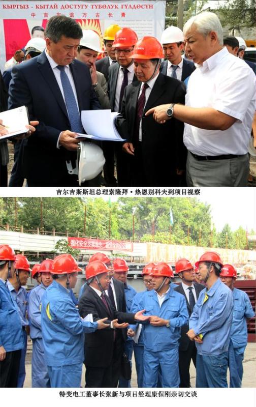上午10時許,吉國總理索隆拜?熱恩別科夫一行乘專車抵達項目現(xiàn)場,在進出口公司總經(jīng)理李邊區(qū)、國際工程公司總經(jīng)理肖志、進出口公司駐吉國辦事處主任木沙江、特變電工黨委書記、董事長張新和河南工程公司項目領(lǐng)導(dǎo)班子的陪同下,乘車視察了項目新建綜合樓、6千伏化學(xué)配電室、檢修樓、主廠房、鍋爐等區(qū)域,并熱情詢問了新建煙囪的施工進度情況,重點了解了新機組工藝和機組建成后的運營效益等問題。