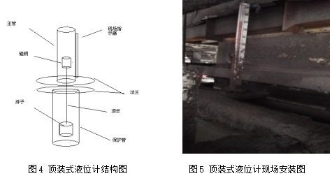 此液位計(jì)特點(diǎn)①測(cè)量范圍大,不受容器高度限制;②顯示器組件與被測(cè)介質(zhì)完全隔離,故密封性好可靠安全;③結(jié)構(gòu)簡(jiǎn)單,安裝方便,維修簡(jiǎn)易;④價(jià)格低廉。通過(guò)與制造商進(jìn)行溝通,將液位計(jì)(如圖5)的保護(hù)管和浮球設(shè)計(jì)為耐腐蝕材料。在安裝過(guò)程中我們根據(jù)頂裝式磁性浮子液位計(jì)的安裝要求進(jìn)行安裝。