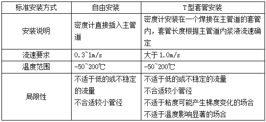 (3)密度計(jì)套管與主管道的連接管直徑應(yīng)把握好,防止堵塞。